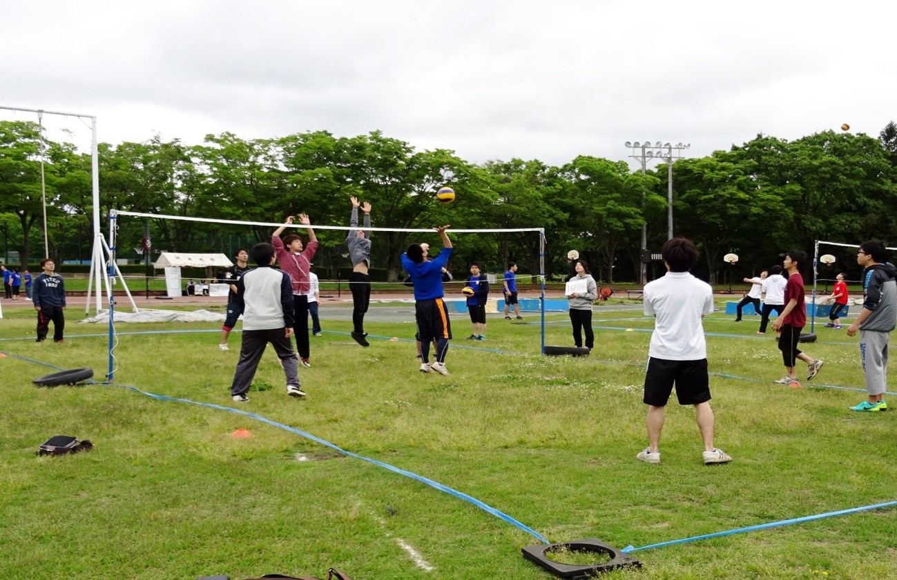 今回は,1日目があいにくの雨となり,正式種目のソフトボール,ハンドボール,テニスが中止となりましたが,2日目に繰り下げて競技が実施されました。それ以外のバスケットボール,ソフトバレーボール,ドッジボールとオリエンテーリングの競技では熱戦が繰り広げられました。また,学生委員会企画のアダプテッドスポーツ(車いすポートボール)やミニゲーム並びに各課外活動団体の体験教室・公開練習も行われ,参加者も仲間とともに楽しんでいました。