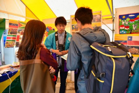 本フェアは,参加希望者が気軽に立ち寄ることができるよう,中央図書館前の石の広場に地域別等のブースを設けて開催しました。