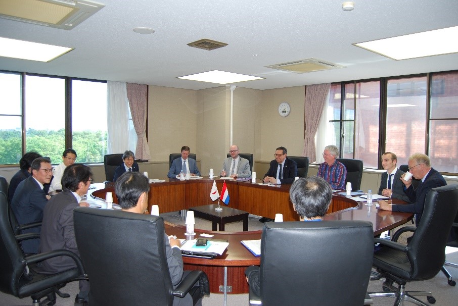 また,本学の協定校であるアイントホーフェン工科大学は,ノールト・ブラバント州を代表する大学です。今回の訪問団には,アイントホーフェン工科大学の国際交流担当者も参加されており,両大学間での更なる交流推進について意見交換が行われました。