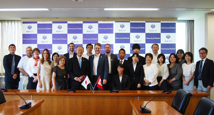 今回の来訪は,本学におけるオリンピック・パラリンピック教育,障がい者教育等に関する意見交換を目的として行われました。意見交換には,清水諭副学長(教育担当),ベントン・キャロライン・ファーン副学長(国際担当)をはじめ,体育系から障がい者スポーツ及び日本で唯一の「スポーツ・オリンピック学位プログラム」であるつくば国際スポーツアカデミー(TIAS)プログラム関係者,ダイバーシティ・アクセシビリティ・キャリアセンター関係者らが出席しました。