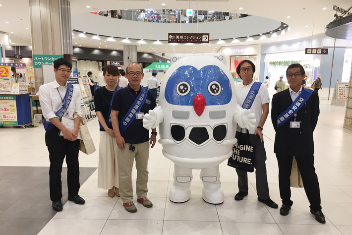 7月19日,つくば市内のショッピングモールにおいて,つくば市交通安全対策協議会主催の「夏の交通事故防止県民キャンペーン」に本学職員が参加しました。 交通安全グッズ及びチラシの配布を行い,自転車の安全利用の呼びかけを行いました。