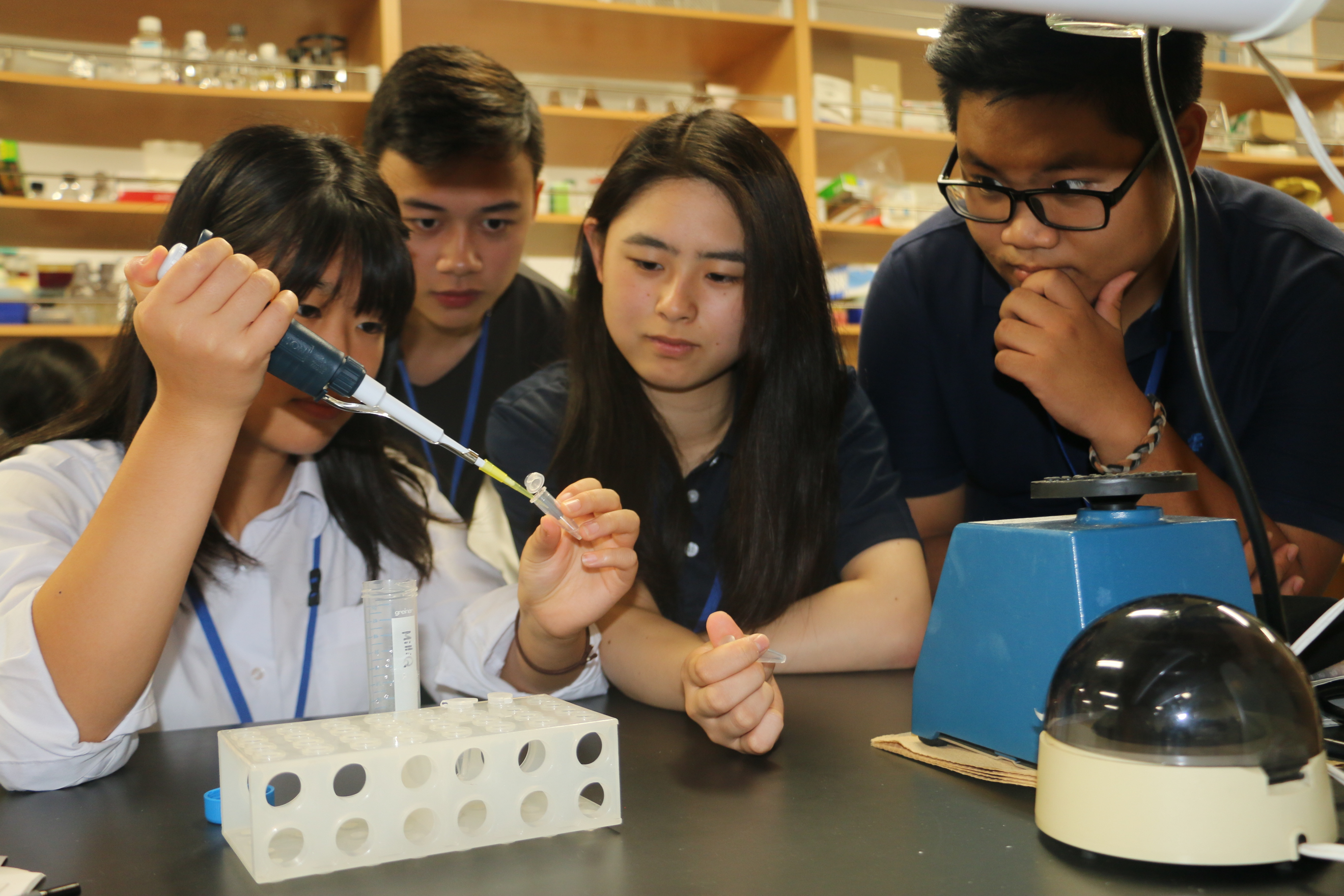 彼らは,高校生向けの特別プログラムに参加し,本学教員,大学院生の指導の下,最新の実験器具を用いてのグループ実習,最終日には,大学生と共に英語での成果発表を行い,2週間のプログラムを無事終えました。