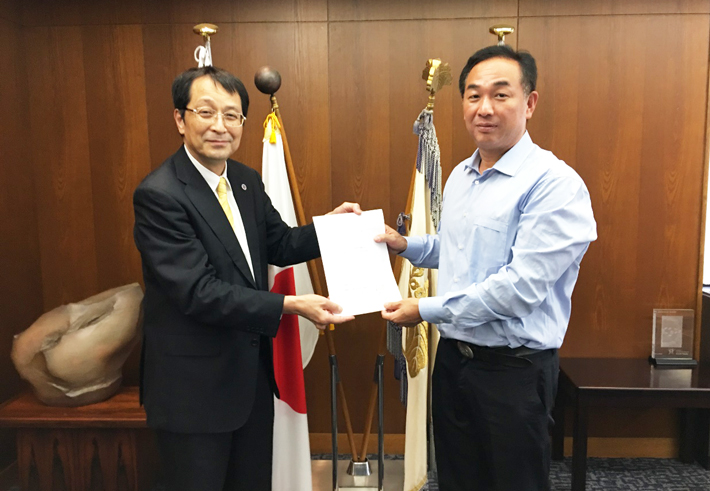 (写真左:永田恭介学長,右:安田秀一客員教授)