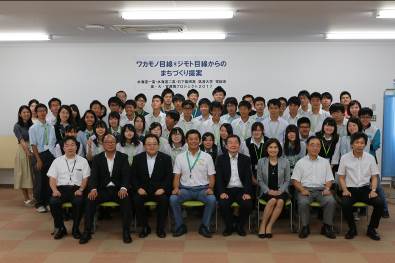 8日に行われた最終発表会では「ヤンキーによる商店街活性化」や「常総線から見る車窓景観形成」などとても高校生らしい奇抜な提案がプレゼンされ,会場を大いに沸かせました。すべての発表を聞いていただいた神達岳志・常総市長からは,高校生提案の実装を行うと熱意あるお言葉をいただきました。