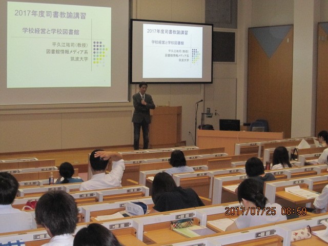 筑波大学 図書館情報メディア系では,7月25日~8月9日(土日を除く)の12日間,平成29年度学校図書館司書教諭講習を開講しました。茨城県教育庁より推薦された,県内の小学校,中学校,高等学校,特別支援学校の現職教諭32名のほか,教員免許状所有者を含む合計39名が受講しました。