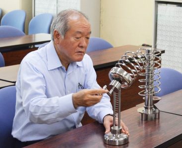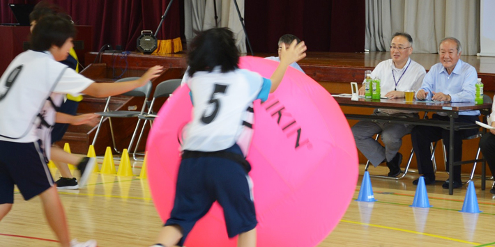 柘植雅義校長が挨拶をした後,根本文雄副校長から大塚特別支援学校で実践している特別支援教育のセンター的機能,交流及び共同学習,障害者スポーツ等の概要について説明をしました。続いて,体育館に移動し,附属大塚特別支援学校と附属坂戸高等学校との交流の中で考案された「おにボール」というアダプテッドスポーツを通じた交流及び共同学習の様子を興味深く視察しました。また,本校で開発・情報提供している特別支援教育の教材を触ったり,指導法について説明を受けるなど,特別支援教育のセンター的機能について関心を示されました。