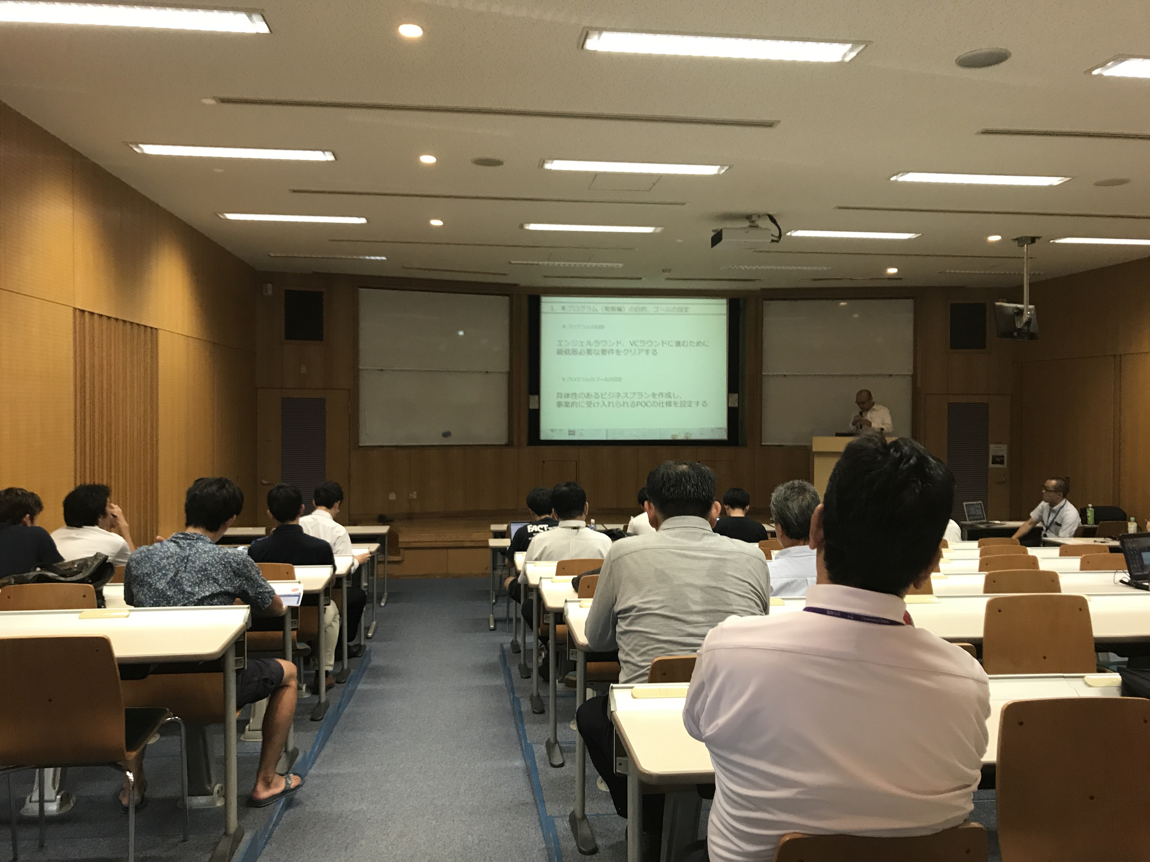 8月29日,総合研究棟A110公開講義室で行われた説明会では,実際に筑波大学プログラム(発展編)にてメンターを務める尾崎典明産学連携准教授より,リアルな講義内容の一部が紹介され,質疑応答やプログラム内容の詳細についてなど,積極的な問い合わせが多数寄せられました。