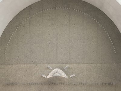 また,同じ場所の壁面には,本学の名誉教授 篠田守男先生の作品「GT8215「世阿弥」2017」が展示されています。こちらは重力を感じるモダンアートの作品です。