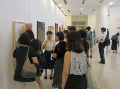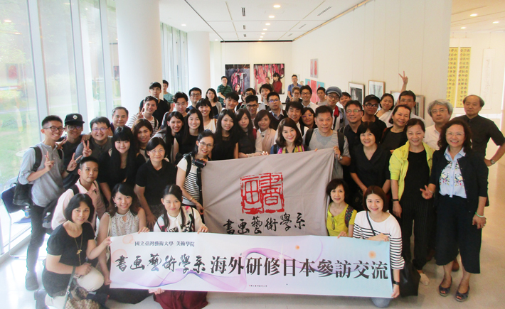 国立台湾芸術大学書画芸術学系,筑波大学芸術系および筑波大学洋画・日本画・版画・書研究室は,8月29日から9月8日の期間,「台湾芸術大学×筑波大学 芸術交流展」を開催しています。 9月5日,台湾芸術大学書画芸術学系の劉素真先生と学生(出品者)38名が筑波大学を訪れ,「台湾芸術大学×筑波大学 芸術交流展」の会場にて,本学出品者および芸術系教員と交流しました。
