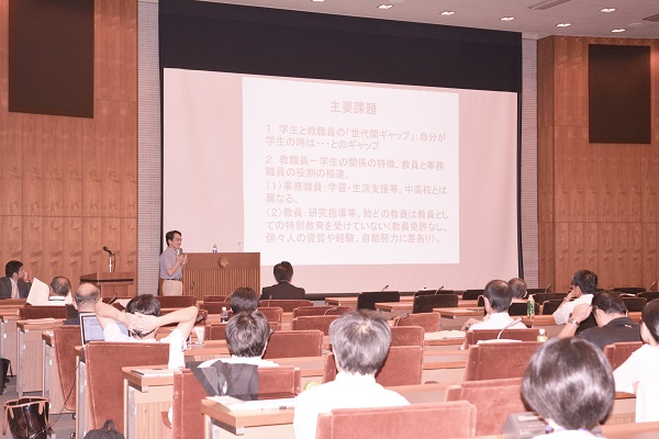 9月20日に大学会館において,平成29年度の学生生活関係教職員研修会(主催:学生生活支援室)を開催しました。この研修会は,関係教職員が当面する学生支援の諸問題について議論し,共通認識を深め改善策を探ることにより,学生支援体制の更なる充実を図ることを目的として,毎年度,開催されているものです。