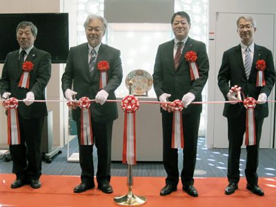 このたび常陽銀行のご厚意により,その石井コレクションのなかから中国磁器1点を,常陽銀行 研究学園都市支店の2階に常設展示させていただくことになりました。それを記念し,9月22日(金),銀行開店前にセレモニーが執り行われました。