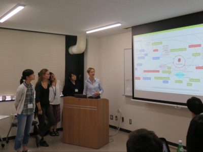 その後9月11日から,3日間にわたり3大学の学生に対するイニシエーションセミナーを開催し,オリエンテーション,自己紹介,懇親会,グループワークを行い,学生および教職員間の親睦を図りました。9月14日,15日には,フードセキュリティーおよびフードセーフティーの理解を深めるために,エクスカーションを実施しました。株式会社トーヨーエネルギーファーム様にご協力いただき,レタス水耕栽培施設およびソーラーシェアリング・営農型発電施設の見学ツアーを実施しました。また,14日の午後には,つくば市の「食と農の科学館」を見学し,専門ガイドより日本の研究機関における「食と農」に関する取り組み・成果について説明を受けました。本フィールドワークは,3大学の学生がお互いの文化の違いや思考を共有する場となっただけでなく,学生の緊張感を和らげる良い機会となりました。9月19日からは,TGSW2017における学生発表に向けて,3グループに分かれ,「食と健康」に関する課題とその解決策について議論し,発表準備に取り掛かりました。