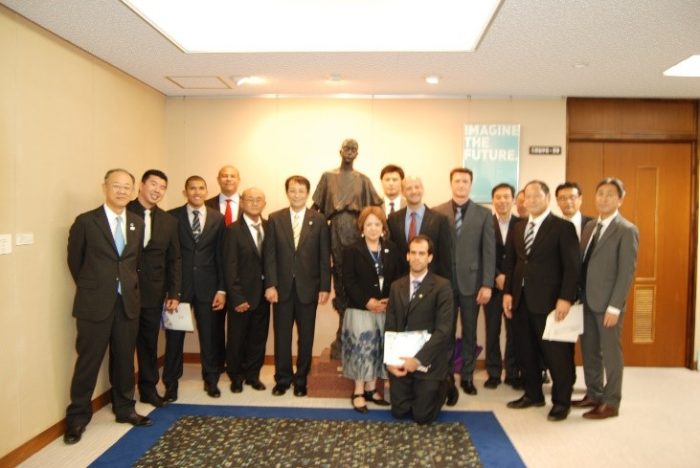 9月27日,ブラジル講道館Umakakeba Uichiro監査役・理事他6名のブラジルにおける柔道指導者一行が,永田恭介学長を表敬訪問しました。ブラジルでは,柔道の人間教育の側面に着目し,ブラジルにおける公教育での柔道導入を目指し取り組みを進めています。 今回は,独立行政法人日本スポーツ振興センター主催の「Sports for Tomorrow (SFT)」の取り組みの一環で,1か月にわたり本学において柔道指導・実技に関する研修を実施しています。学長との懇談の場では,今回の研修成果を起点として,今後のブラジルにおける指導教員の協力派遣に発展させていくことなどに関し,話し合いが行われました。