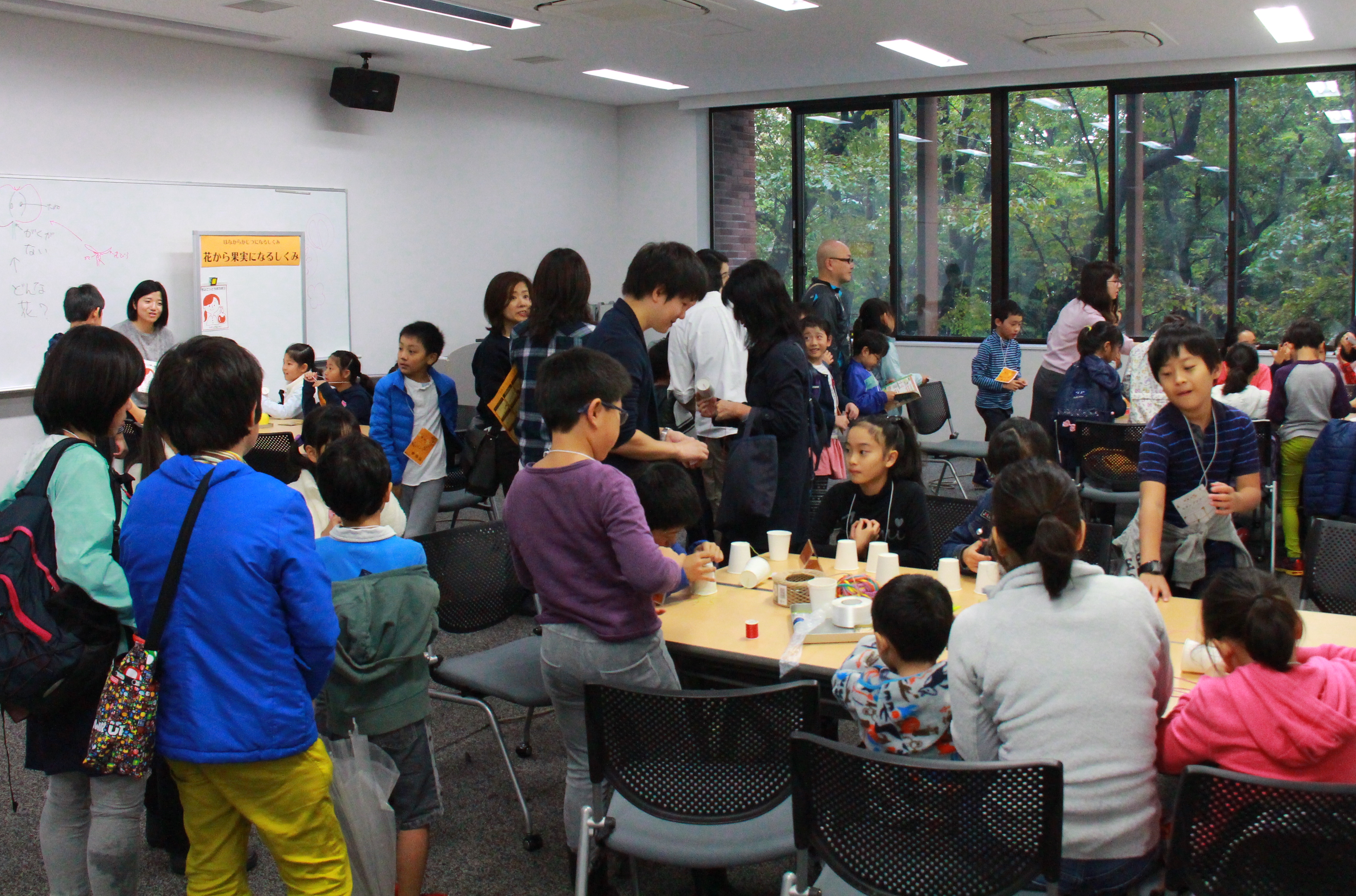 10月29日,筑波大学東京キャンパス文京校舎にて,「ちょこっと理科(+国語・社会・算数)クラブ リターンズ」を開催しました。これは,春の全国科学技術週間で開催している子ども向けイベント「キッズ・ユニバーシティ」の「課外活動」版として実施したものです。当日は,筑波大学の教員や学生の指導による,簡単で楽しい実験や観察,工作,国語,社会,算数,虫の観察など,いつもの学校とはちょっと違う,筑波大学テイストの学習体験コーナーを取り揃えました。台風22号による悪天候にもかかわらず,300名あまりの児童とその保護者で,会場は活況を呈しました。
