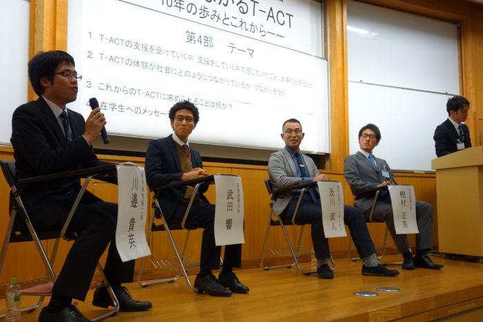 T-ACTの支援開始10周年を記念した今回の公開シンポジウムは「社会につながるT-ACT ――10年の歩みとこれから――」というテーマのもと,T-ACTの10年間の支援の成果を検証し,学生支援としての意義を再確認するイベントとなりました。