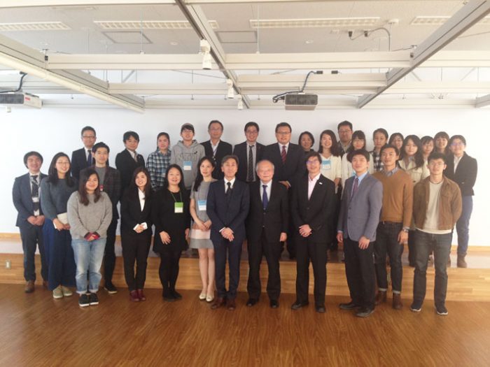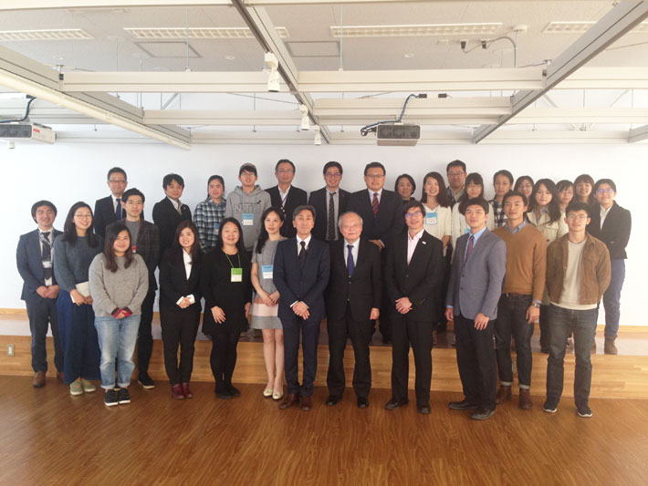 12月16日に台湾人留学生のためのイベント,台湾人若手カフェ~サイエンスとキャリアパス~を開催しました。 午前中のサイエンスカフェでは,国立台湾大学生命科学系 丁照棣氏をお招きし,特別講演を開催しました。その後,各分野の台湾人留学生5名が自身の研究発表を行い,参加者で議論をしました。議論は,予定時間を超えて大いに盛り上がりました。 午後のキャリアパスカフェでは,台北駐日經濟文化代表處 郭仲熙副代表のご挨拶をはじめ,筑波大学卒業生を中心にミューゲイト株式会社代表取締役 謝中天氏,株式会社アシックス 大沼和範氏,LAHO Global董事長 吳三才氏,常陽銀行 市場國際部 加藤倫夫氏と第一線で活躍する企業の方々より講演をいただきました。質疑応答も多く,活発な意見交換が行われました。 その後,留学生,登壇者の懇談を目的とした意見交換会の場を設け,交流を図りました。 今回のイベントを通して50名近い参加者がありました。今後も筑波大学台湾オフィスでは,台湾人留学生の活動をサポートし,留学生同士,また卒業生や校友会とのネットワークを広げる活動をしていきます。