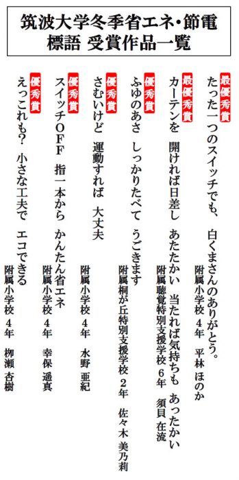 筑波大学冬季省エネ・節電標語受賞作品を決定