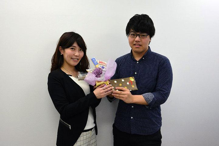 (左:株式会社ぐるなび 青木葉子氏,右:学園祭実行委員会委員長 田辺飛鷹さん)
