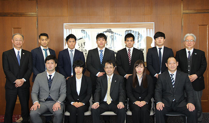 本年度の成績報告や東京五輪に向けた抱負など,終始和やかな雰囲気で懇談しました。最後に,学長及び副学長から,素晴らしい成績を収めたことへの労いと今後の活躍を期待する言葉がありました。