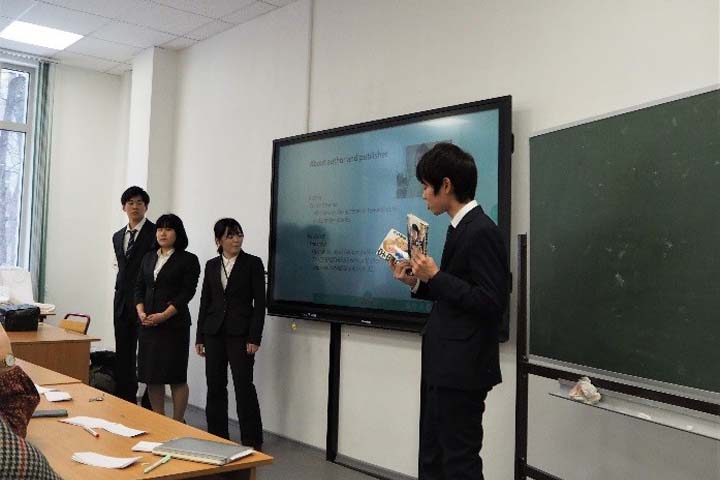 本研修は,1.グローバル人材として必要なマルチリンガル能力と実務能力の土台を築くこと,2.ビジネスフィールドとしてのロシア語圏を体感し,現地の経済情勢や対日経済関係に関する生きた最新情報に触れることで,ビジネスセンス(着眼点や発想力)を磨くとともに,将来のビジョン形成につながる経験を積むことの二つを目的としています。 研修中には,本学学生が現地学生との協働により企画したラウンドテーブルやビブリオバトル,日本語学習者や協定大学の学生との交流,在外公館や日本センター,駐在企業等で活躍されている外交官やビジネスパーソンらによる講義などを実施し,英語やロシア語を用いた実践的な学びとなりました。