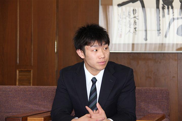 学長から今後の目標を聞かれた宮地選手は,東京オリンピックへの意気込みなどを語り,終始和やかな雰囲気で懇談しました。