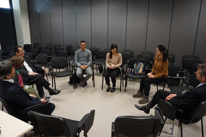 4月10日は,グルノーブル大学を訪問し,施設を視察後,Patrick Levy学長等と今後の連携について意見交換しました。最後に,グルノーブル大学と本学との共同学位プログラムで学ぶ学生と,その修了生達と懇談し,激励しました。