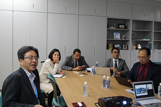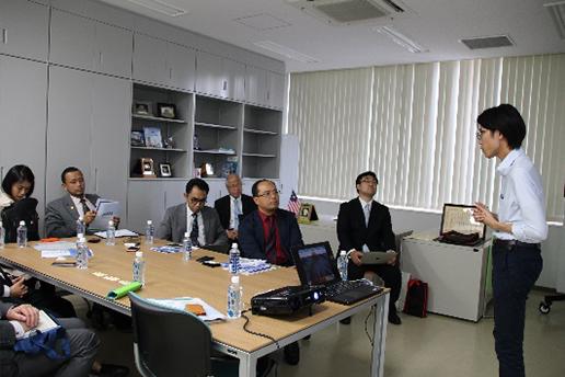 その後,一行は,2016年4月に環境防災研究棟内に設置された"U. Tsukuba-MJIIT Cooperation Office"において,本学の科目ジュークボックスシステム(Campus-in-Campus)や産学連携等の取り組みの紹介に熱心に耳を傾けておられました。