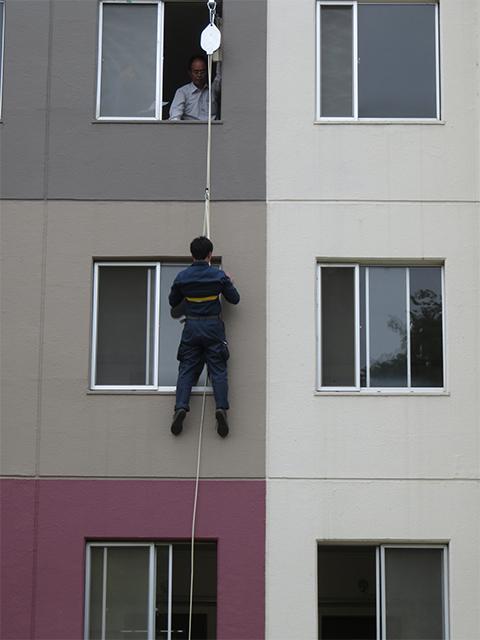 5月18日,平砂学生宿舎共用棟前で学生宿舎初期消火訓練を実施し,留学生を含む約150名の学生が参加しました。 訓練では,学生生活課の指導による消火器を使用した初期消火訓練,設備メーカーによる避難ハシゴ・緩降機の使用方法の説明,避難実演が行われました。