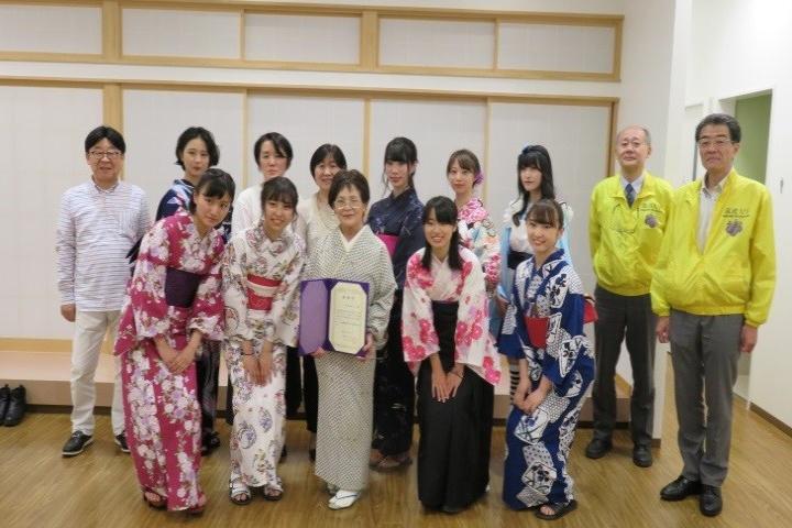 また,ゆかたコンテストに参加する学生のゆかたの着付けを長年担当してくださった桑畑淑代様に対して,学長名での感謝状を贈呈しました。