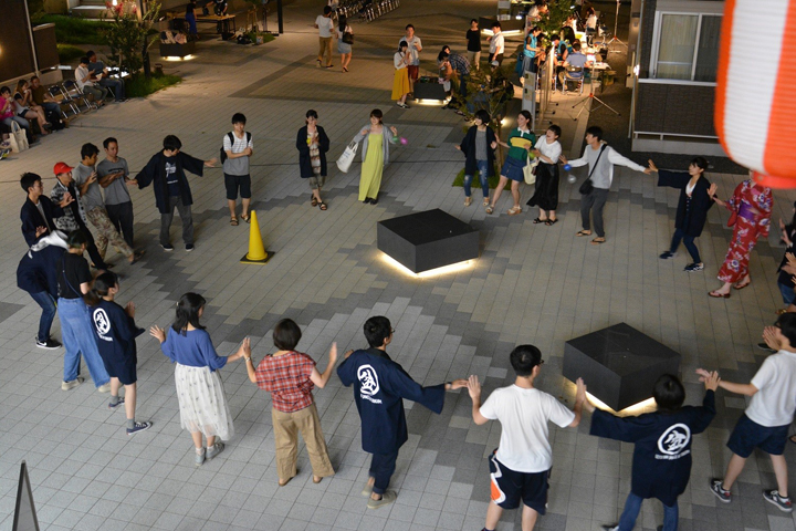 祭り終盤には本学T-ACT団体である盆LIVEの掛け声に合わせて,祭りの参加者が盆踊りの輪に入り,日本の夏を大いに楽しむ場面も見られました。