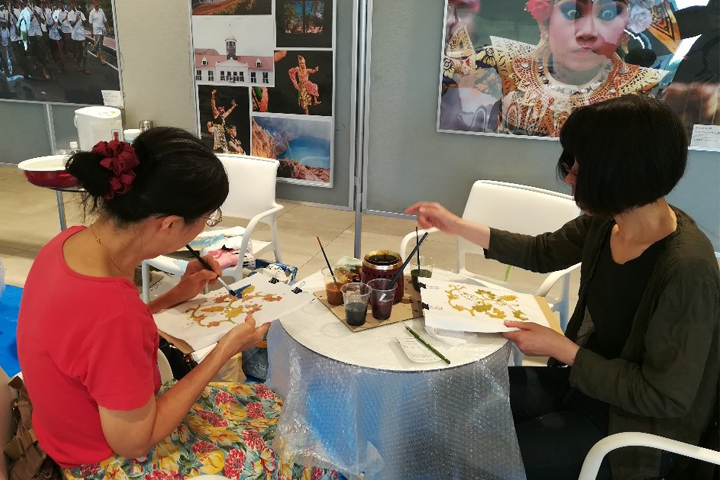 また,インドネシア伝統の染物であるバティック染体験や,インドネシアのカカオを使用したチョコレート,インドネシアのかご,オランウータンのぬいぐるみ,バティック染めのテキスタイルなどの販売も行われ,来場者はそれぞれインドネシアの文化に親しんでいました。