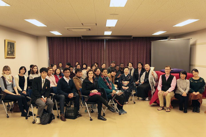 今回は、柳家喬之助師匠(落語家)、柳家小菊師匠(音曲)をお招きして、落語と音曲について講演および実演をしていただきました。英訳やパワーポイントを使ったイラストなどの助けを借りて、初級の日本語学習者も話芸を楽しんでいました。留学生の参加者からは、話芸の魅力を生で味わうことができたと大変好評を得ることができ、また日本人の参加者からは、日本人でも知らなかったことが多いことや、留学生に日本文化を伝えることの大切さ、難しさを改めて感じたという意見が寄せられました。