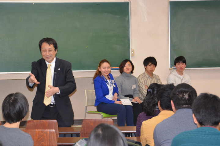 この交流会は、永田恭介学長と学生との交流の場として平成25年度から年に2回開催しています。