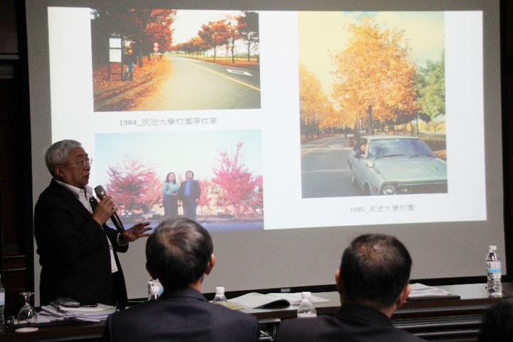 また、金保副学長から本学50周年を記念する基金への協力の呼びかけがあったほか、本学卒業生で台湾国立交通大学渡辺浩志教授および筑波大学への留学経験がある版画家の鐘有輝氏による筑波大学での思い出や自身の活動についてのプレゼンテーションがあり、参加者が熱心に耳を傾けました。