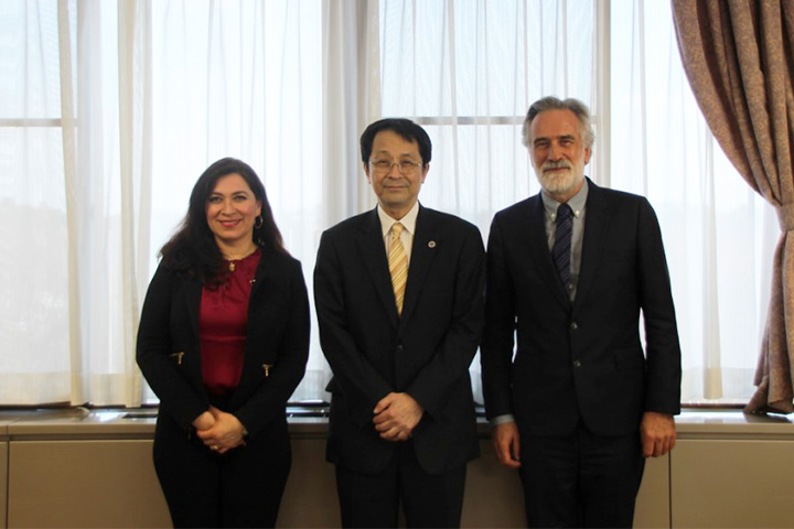 2019年4月3日、World Cultural Council (WCC)のDr. Esteban Meszaros,Executive Director、Ms. Lily Hernández,Secretary Generalの2名が来学し、永田恭介学長、ベントン キャロライン副学長(国際担当)、德永筑波会議支援機構理事長を表敬訪問されました。