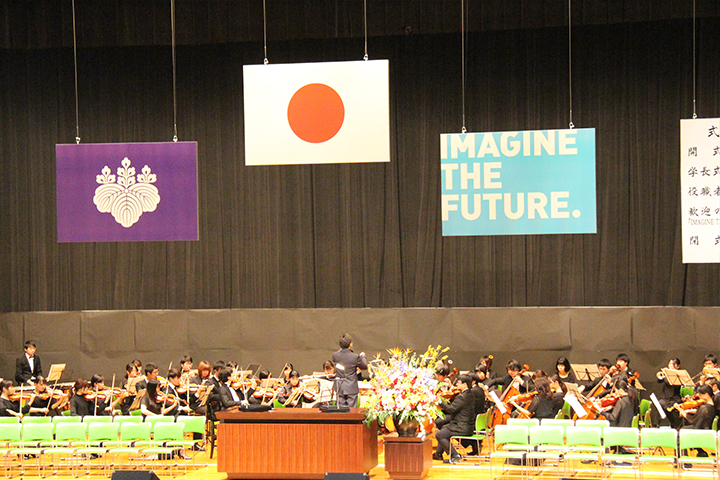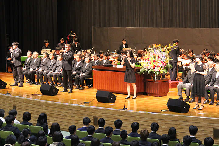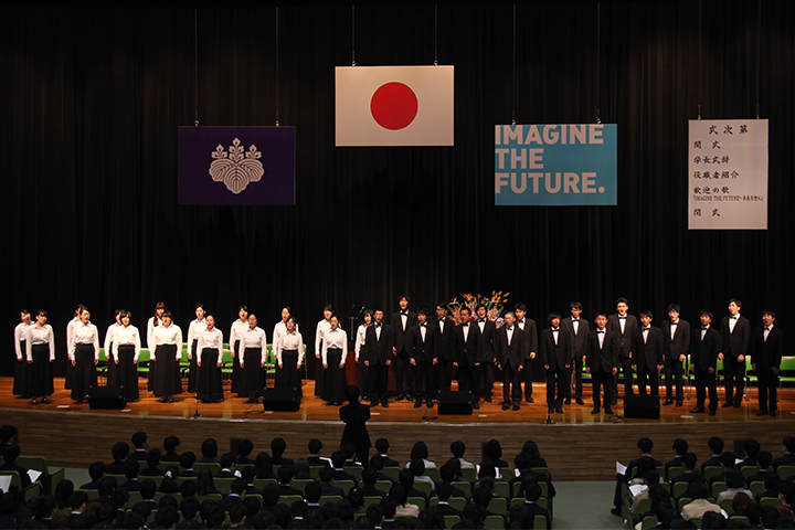 永田恭介学長の式辞,役職者紹介の後,最後に,歓迎の歌が披露されました。