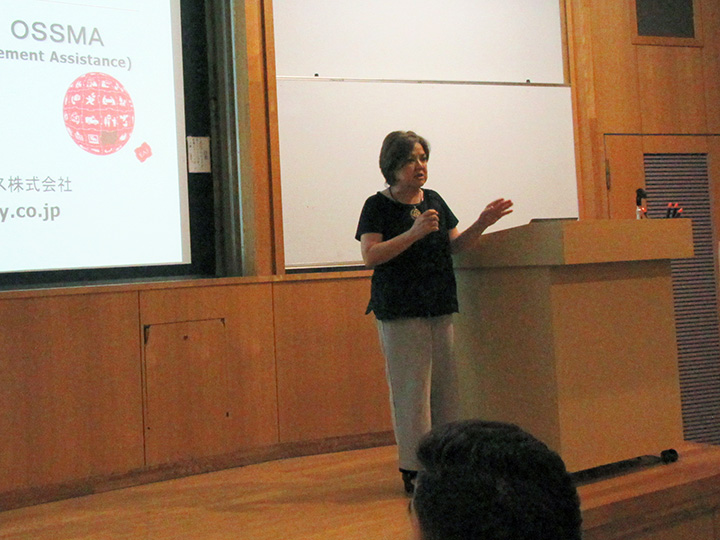 開会にあたり,グローバル・コモンズ機構のベントン・キャロライン機構長より挨拶があり,本学の海外危機管理に関する取組みを紹介したほか,これから海外に渡航する学生に向けてメッセージを送りました。