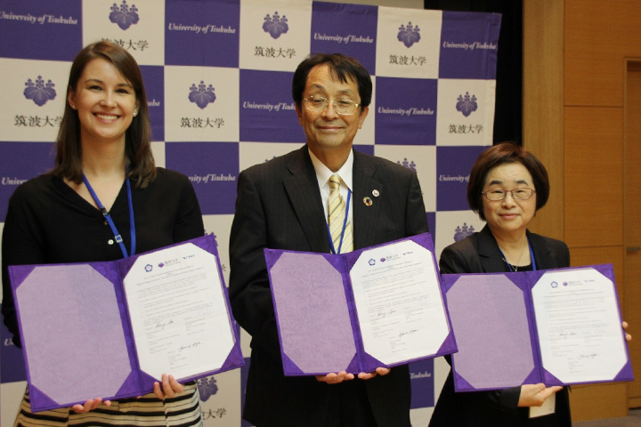 今回の訪問では、台湾・政治大学、ブラジル・FGV、本学の三者間の国際共同プログラムの実現に向け、意向書への調印式が行われました。