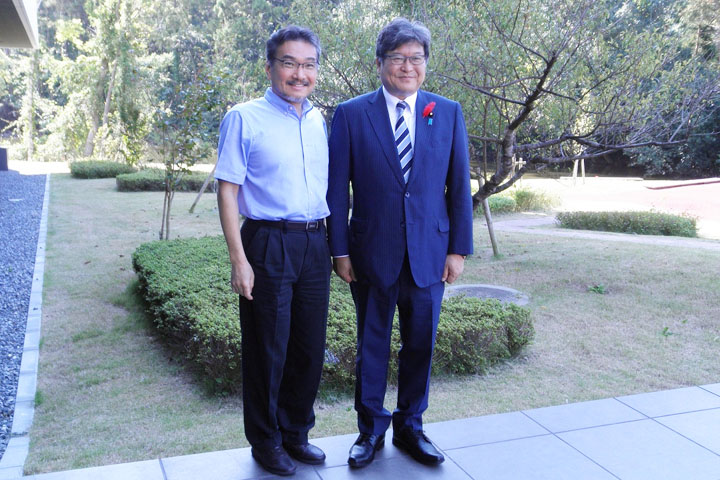 本学の視察には、文部科学省からは、菱山豊科学技術・学術政策局長、新田浩史科学技術・学術戦略官、山下 恭徳研究振興局基礎研究振興課長、玉上晃大臣官房審議官、後藤教至高等教育局国立大学法人支援課企画官が同行されました。