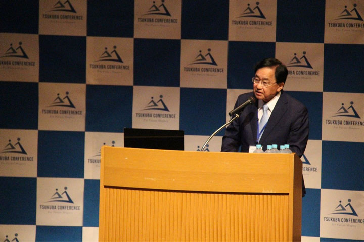 10月2日午前に行われた開会式において、筑波会議を主催する筑波会議委員会の委員長を務める永田恭介学長が、開会のあいさつを行いました。また、筑波会議委員会委員で本学経営協議会委員も務める株式会社三菱ケミカルホールディングス取締役会長の小林喜光氏が基調講演を行いました。さらに、本学図書館情報メディア系の落合陽一准教授がサプライズで登壇し、参加者とのトークセッションを行いました。ノーベル賞受賞者を囲むスペシャルプレナリー