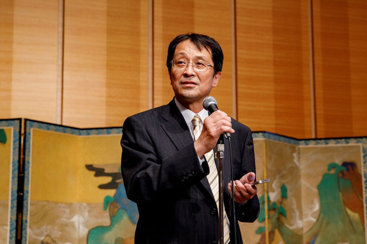 (閉会式で挨拶する永田学長)