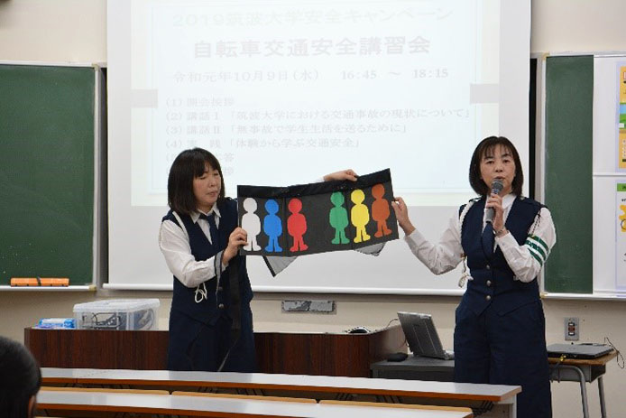 筑波大学学生に係る交通事故は増加傾向にあり、過去には死亡事故に至った事案もあります。交通事故防止のため、今後も本講習会等交通安全に係る啓発活動を実施していきますので、学生の皆さんも交通規則や運転マナーを守り、交通事故防止に努めてください。