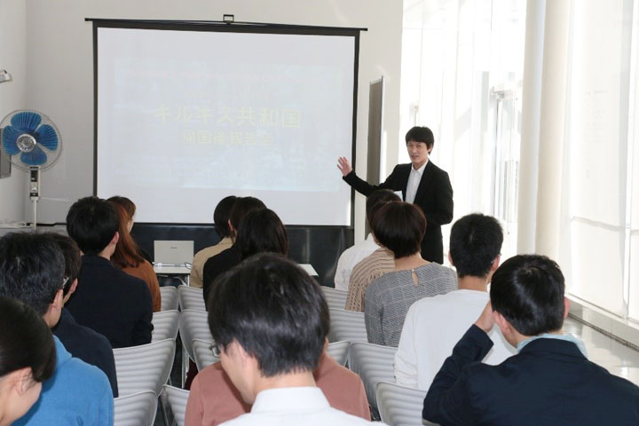 (キルギス・ペテルブルグ海外研修帰国後報告会の様子)