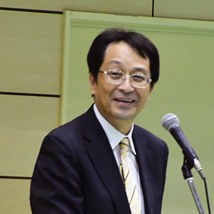 (歓迎の挨拶を述べる永田恭介学長)