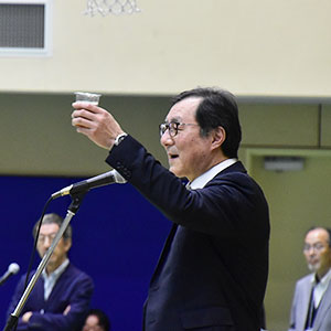 (乾杯の発声をする金保安則副学長(産学連携担当))