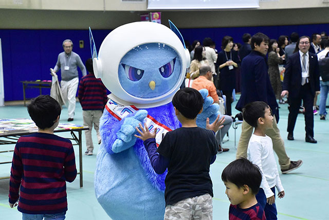 会の途中には、筑波大学アスレチックデパートメントマスコットキャラクターコズミくん、筑波大学附属図書館マスコットキャラクターがまじゃんぱーらが登場し、卒業生・修了生の子どもたちと触れ合っていました。