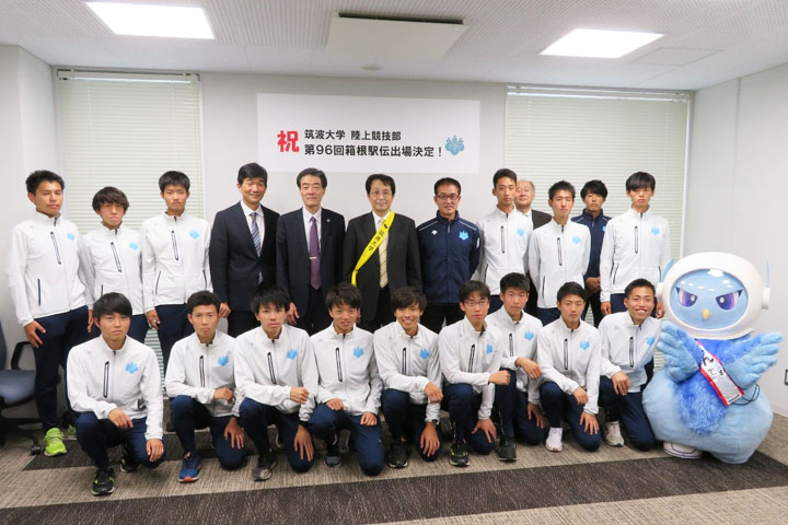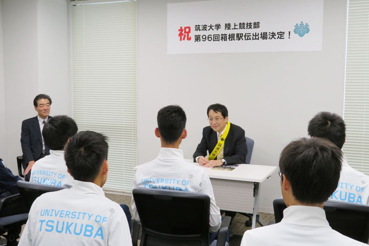 陸上競技部が箱根駅伝予選会突破を学長に報告