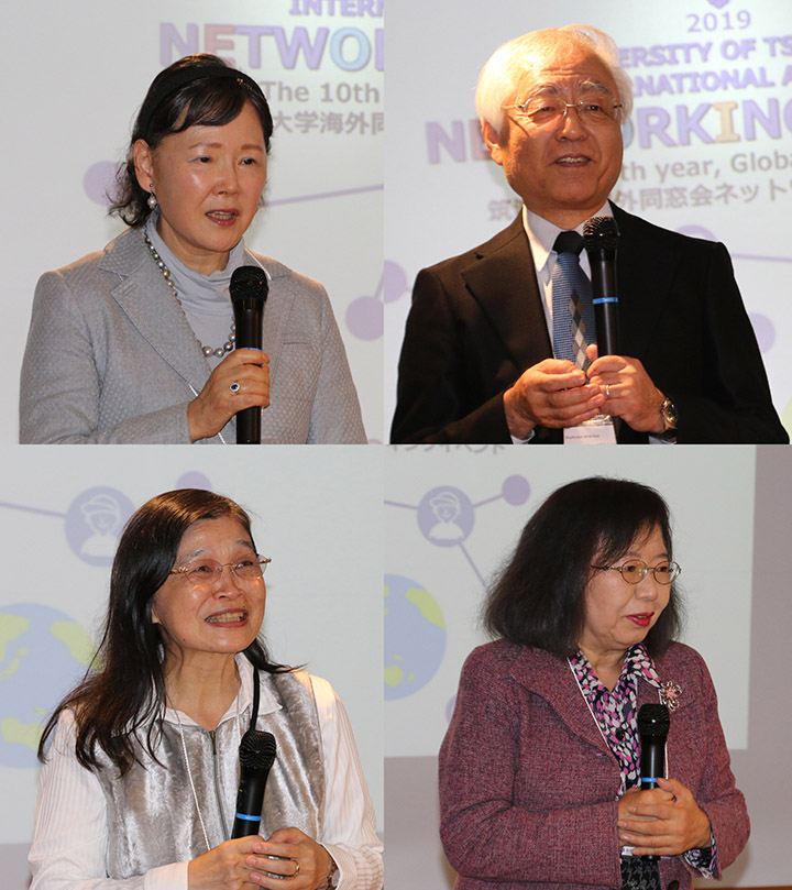 (左上:塩尻和子 元国際担当副学長 右上:北脇信彦 元グローバル30プロジェクト推進マネージャ、元社会・国際学群長、 左下:本澤巳代子:元社会・国際学群長 右下:首藤もと子:元国際地域研究専攻長))
