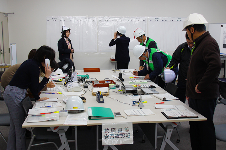 同時に、全学災害対策本部を設置し、屋内・外放送設備による放送訓練、各部局からの情報収集及び遠隔地のセンターを含む全学の情報把握訓練などを行いました。