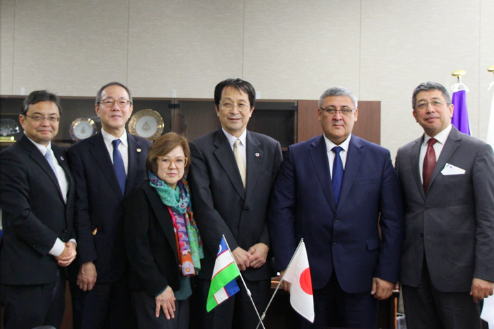 12月20日、ウズベキスタンのInom Madjidov教育担当大臣、Alisher Abidjanovウズベキスタン国立世界言語大学国際協力担当副学長が来訪し、永田恭介学長、ベントン・キャロライン副学長(国際担当)、臼山利信人文社会系教授(ロシア・中央アジア地域責任者)、田中健太郎副理事(国際担当)を表敬訪問されました。